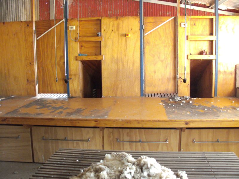 - Two stand raised board shearing shed with under cover shedding for approx. 150 sheep, steel sheep yards & loading ramp.