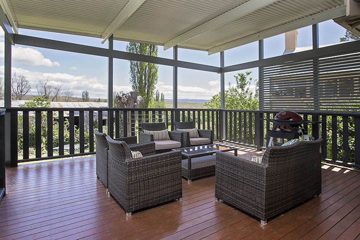- Family and dining room featuring slow combustion wood fire as well as gas heating flowing onto stylish new gourmet kitchen boasting quality fittings and appliances, as well as island breakfast bar, further opening onto large covered entertaining deck, second living room with "gas log fire" not long installed.